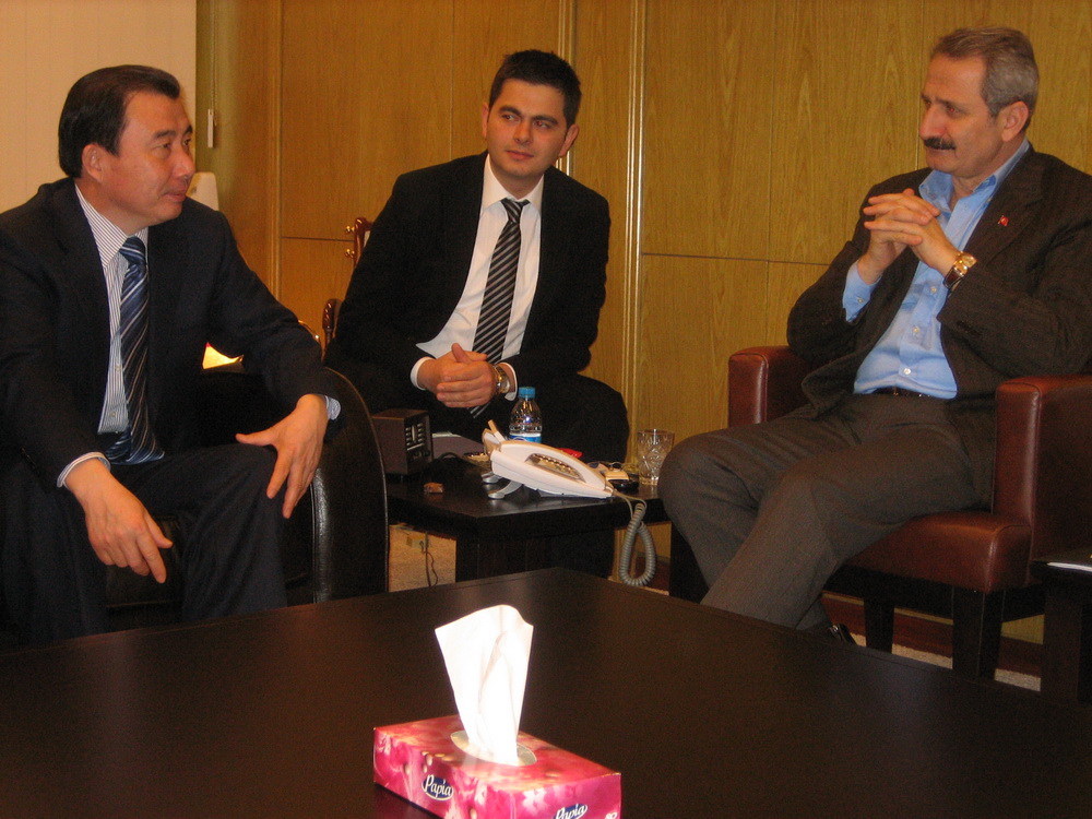 2010年1月23日下午,在中材節能余熱發電及水泥技術土耳其推介會閉幕之后,中材集團總經理劉志江在中材節能董事長張奇的陪同下到訪土耳其外貿部,拜訪了土耳其外貿部長Zafer CAGLAYAN(扎菲爾•恰拉揚)先生。