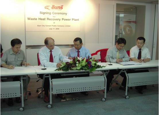 中材節能繼與全球著名的LAFARGE、HEIDELBERG公司簽訂水泥窯余熱發電項目總包合同之后,在國際市場再傳捷報。經過深入、細致、嚴謹地技術和商務談判,中材節能與HOLCM集團簽訂了泰國京都(SIAM CITY)水泥公司的兩條萬噸水泥線余熱發電總承包合同,成就該領域國際第一大單。