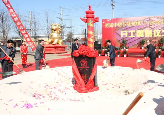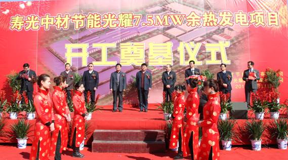2012年3月11日上午10點18分,中材節能股份有限公司首個玻璃行業余熱發電項目&mdash;&mdash;壽光中材節能光耀7.5MW余熱發電項目開工奠基儀式在山東壽光隆重舉行。