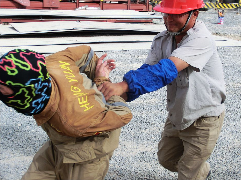 此次防恐反恐應(yīng)急演習(xí)于現(xiàn)場辦公區(qū)域由我公司項目部、安裝分包商江蘇恒遠(yuǎn)集團(tuán)項目部、土建分包商中國港灣公司項目部聯(lián)合舉辦,并邀請業(yè)主安全管理人員現(xiàn)場觀摩。演練采用事前告知方式,設(shè)定模擬場景。
