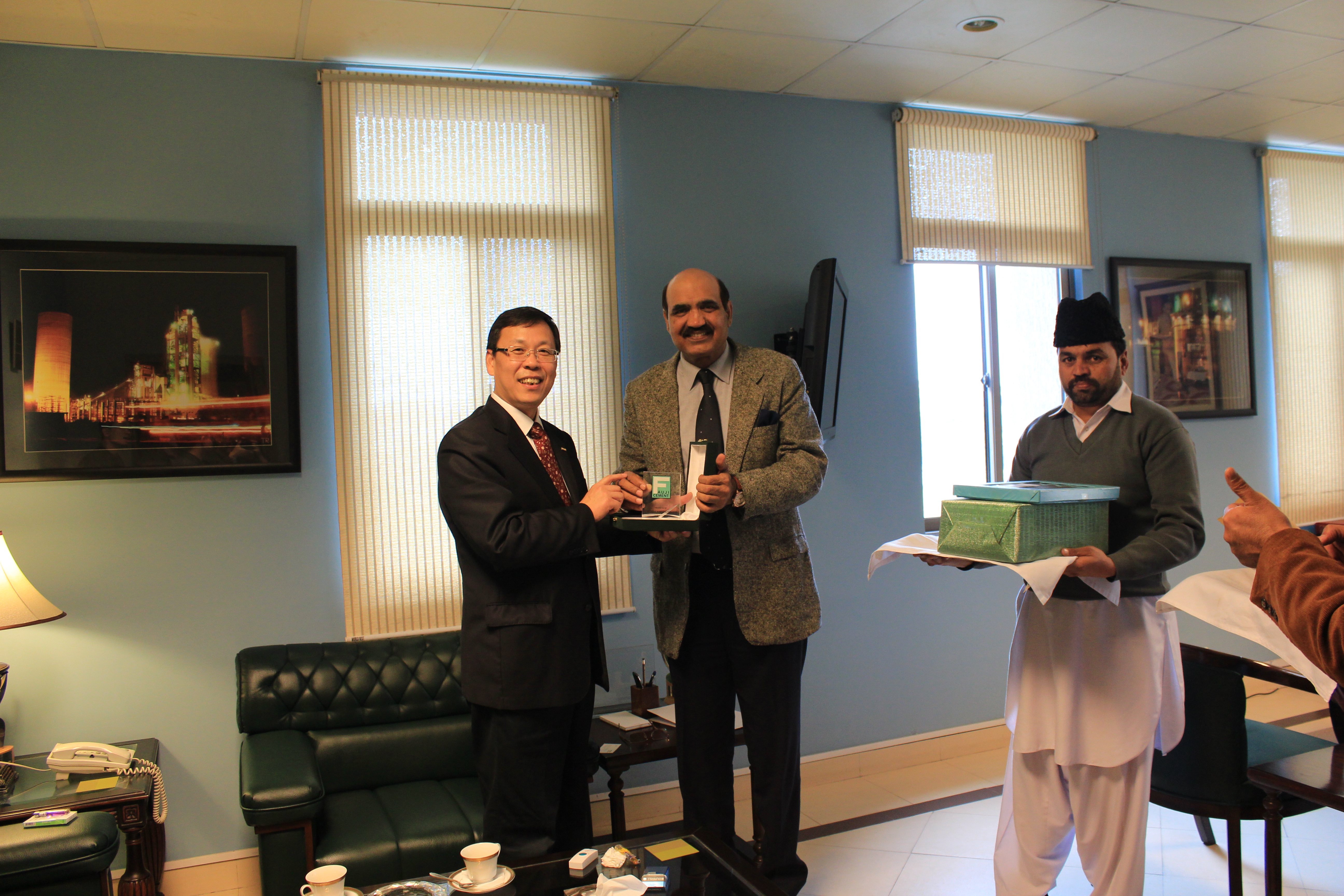 2月20日是大年初二,胡也明結束了菲律賓慰問之后,又乘坐十幾個小時的飛機,風塵仆仆抵達巴基斯坦首都伊斯蘭堡,慰問春節期間仍然堅守在工地上的同志。對于胡總裁的到訪,Fauji公司總經理Mr. Siddiq親自到機場迎接。當天下午在FAUJI TOWER公司總部,胡也明與該公司CEO/MD Mr. ALI KHAN先生進行了親切會晤,雙方共同回顧了多年的愉快合作,并對未來做出了展望。