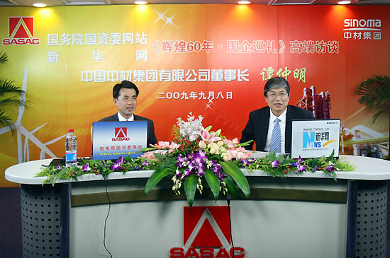 9月8日,集團(tuán)董事長(zhǎng)譚仲明做客新華網(wǎng)《輝煌60年,國(guó)企巡禮》高端論壇,與廣大網(wǎng)友“面對(duì)面”,就中材集團(tuán)的跨越式發(fā)展等一系列熱點(diǎn)問題進(jìn)行在線交流。