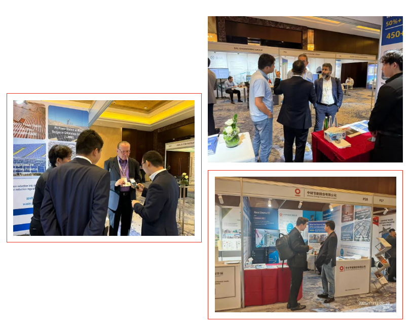 The on-site networking sessions yielded fruitful results. Sinoma Energy Conservation Limited staff visited the booths of new and long-standing customers, reviewing the operating performance of past projects with regional partners such as Saudi Arabia’s YCC and RCC, and carefully collecting suggestions on O&M optimization and technology upgrades.